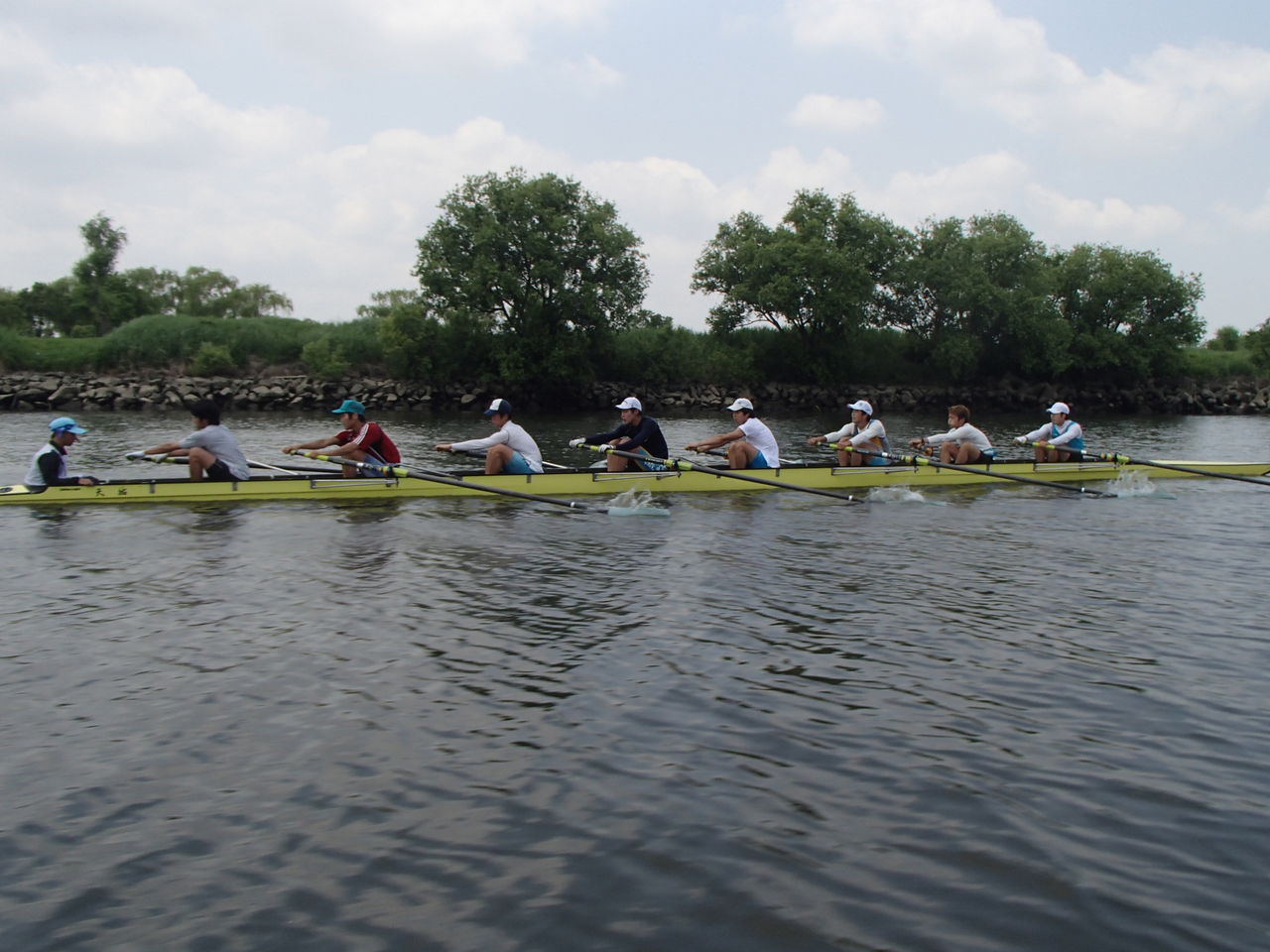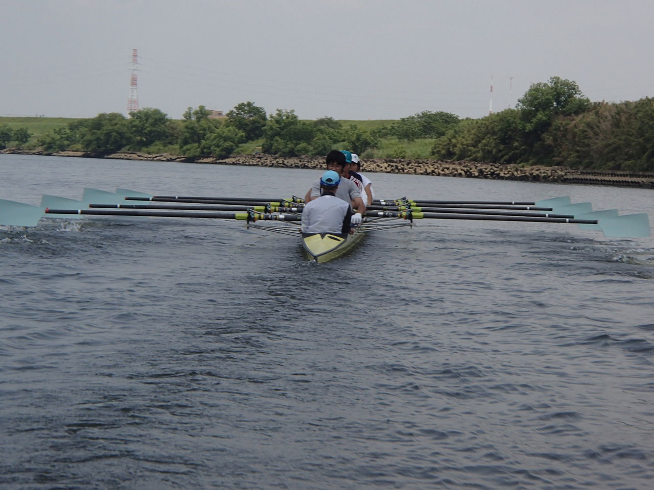 高〜中レートの練習に加え、高レートで荒れたブレードワークを正すためのUT&技術練習乗艇も取り入れています。ノンフェザー漕ぎ(フォワード中にブレードを寝かせずに立てたまま漕ぐ方法)などは、冬場の頃と比べるとかなり改善してきました。特に、エントリー前のブレードの高さやエントリースピードを良くコントロール出来るようになってきました。