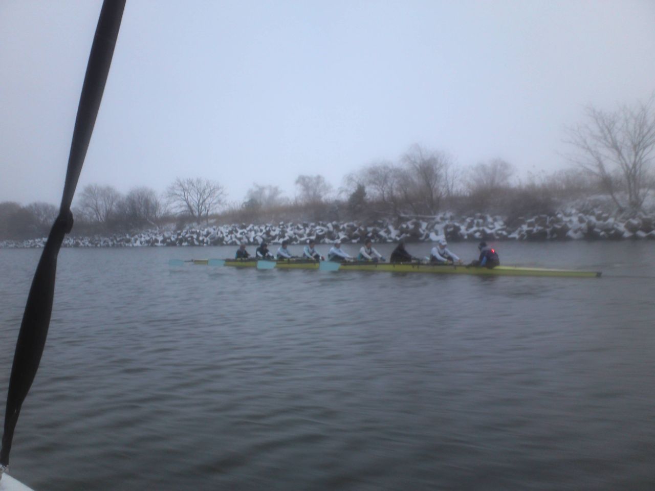 今日は20年に1度の大雪ということで、ジュニア選手たちは雪が高く積もる前に荒川でしっかりと漕ぎました。