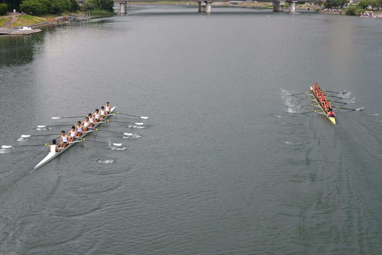 京大艇庫前までは相手がインカーブで早めに勝負を仕掛けてきたということもあり、少し出られていたのですが、焦ることなく落ち着いた漕ぎで最終的には70mほどの差を付けて勝ちました。