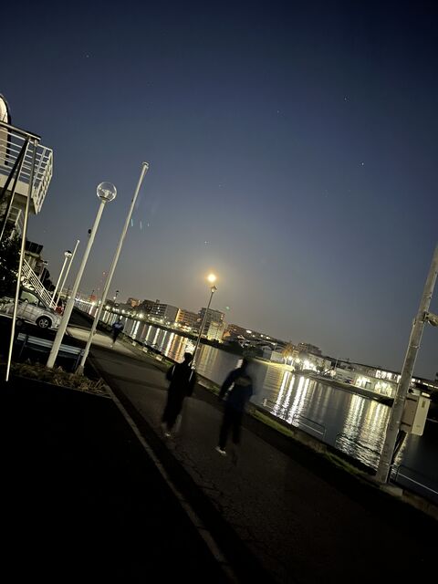 ↑朝練習のアップの際、西の空に見えた満月です。「エモい」ですね。