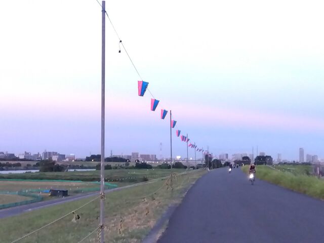 これは、少し前に河川敷を散歩した時の写真です。荒川の東京側も埼玉側も提灯がありました。東京側です。
