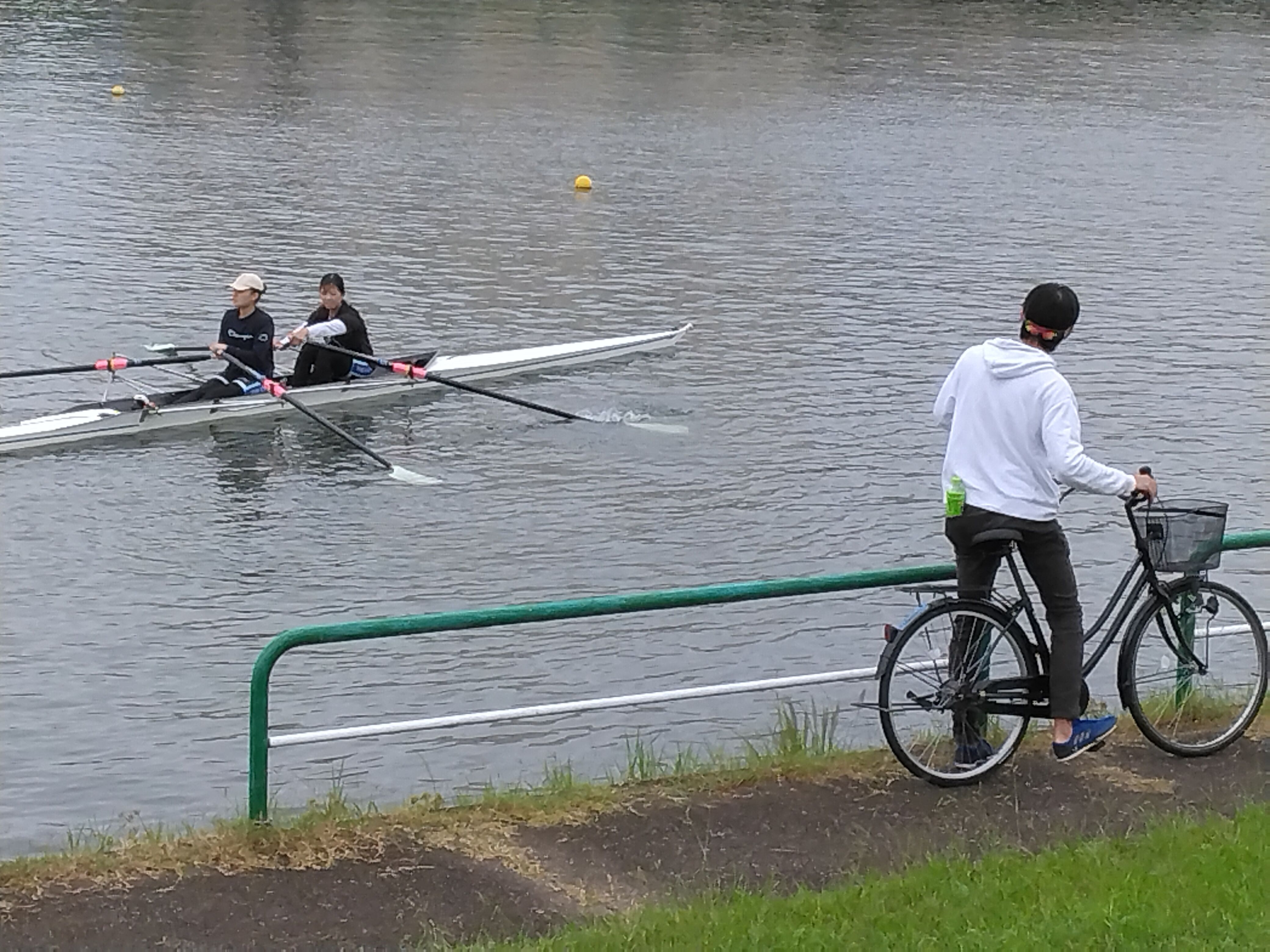 女子部からは、ダブルスカルSpica(♯S梶谷/♯B磯崎)、また新人男子エイト三四郎のコックスとして神山が出場しま