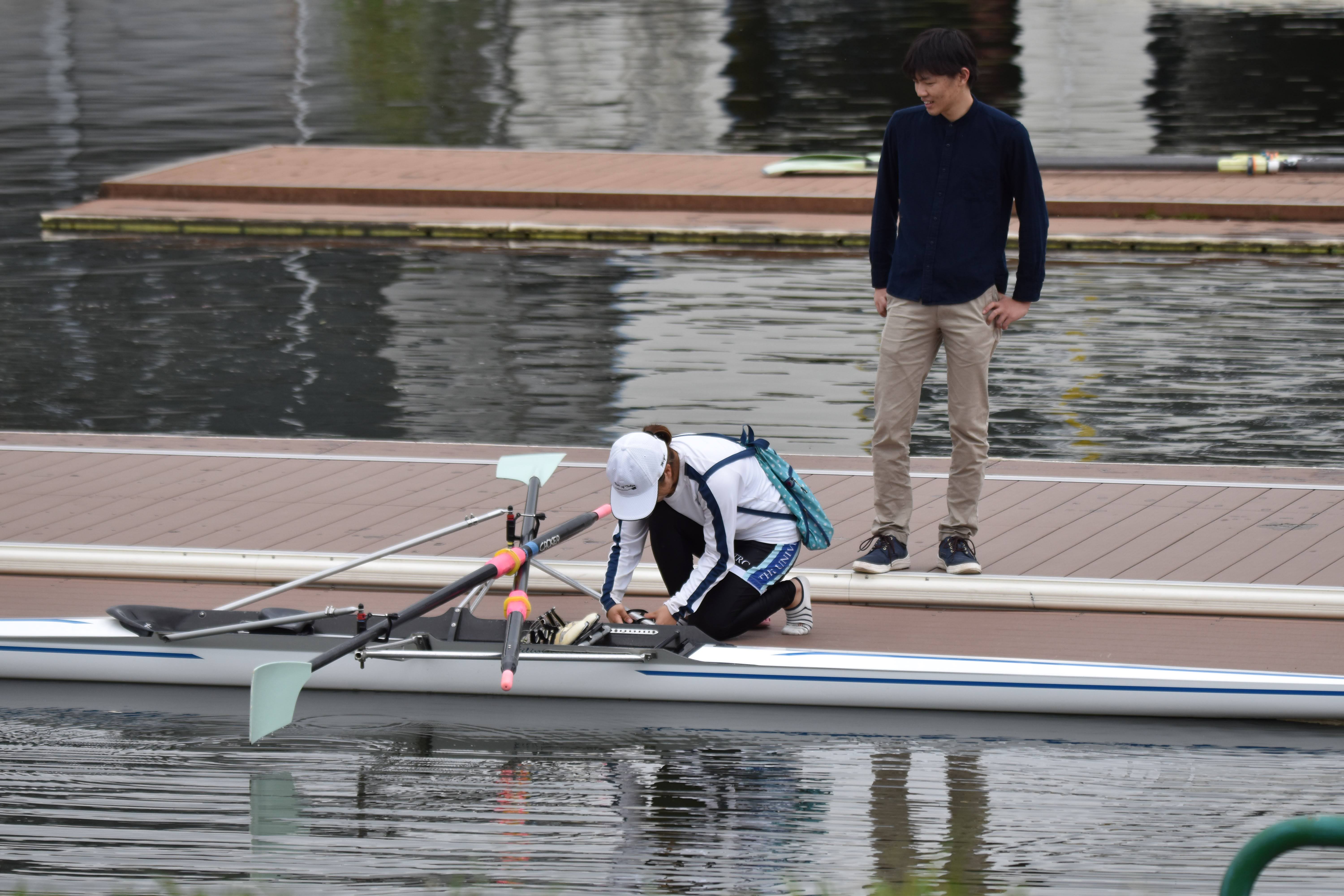 そしてオープンフォアで出漕し、勝利をおさめた神山はポンド沿い